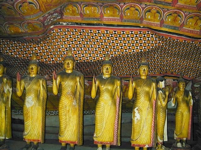 Die Felsentempel von Dambulla sind im ersten Jahrhundert v. Chr. erbaut worden . Zwischen dem 15. bis 18. Jahrhundert wurden die Felsenhöhlen weiter ausgebaut . Die 5 Höhlen liegen auf einem 100 Meter hohen Felsen , von wo man einen herrlichen Ausblick auf das Umland hat . In einer Höhle befindet sich ein 14 m langer , aus Fels gehauener liegender Buddha . Die anderen 4 Höhlen zeigen Steingravierungen und Fresken mit leuchtenden Farben , welche das Leben Buddhas zeigen. In der schönsten und grössten Höhle stehen etwa 150 lebensgrosse Statuen von Gottheiten . In diesen Felsenhöhlen fand König "Valagam Bahu" im 2. Jahrhundert v. Chr. 14 Jahre lang Zuflucht , während die Hauptstadt Anuradhapura von den Indern besetzt war. Nach Rückeroberung der Hauptstadt wurden die Höhlen zu herrlichen Felsentempel. Klick hier fuer mehr Fotos
