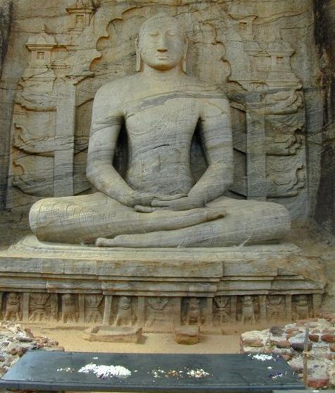 Die Buddhastatuen der "Gal Vihara" gehören wohl zu den bekanntesten Kunstwerken Polonnaruwas . Mitte des 12. Jahrhunderts , schlug man aus einem Granitfelsen , vier Statuen heraus , welche zu den Meisterwerken ceylonisischer Kunst gehören . Ein meditierender Buddha , ein stehender Buddha mit verschrenkten Armen , was selten zu sehen ist , und eine Statue , die gerade ins Nirwana hinüber tritt . Die vierte Statue ist in einer Höhle eingemeiselt . . Klick hier fuer mehr Fotos
