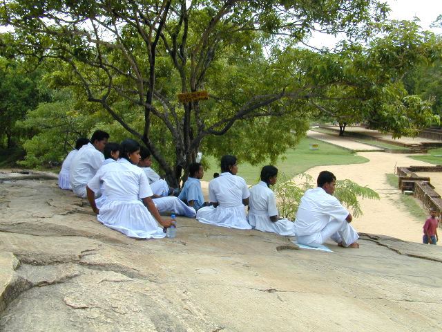 Der massive Felsen erhebt sich 200 m aus dem grünen Dschungel in den Himmel . Vor 1500 Jahren muß dieser Anblick mit dem Palast oben auf , überwältigend ausgesehen haben. Im 5. Jahrhundert und nur 18 Jahre lang , war diese Festung eines der schönsten Königsresidenzen , die die Welt je gesehen hatte . Angst , Arroganz und der Wahn , gottähnlich zu sein , erbaute der Prinz Kasyapa seinen Palast auf diesen Felsen . "Erschlagt meinen Vater" brüllte wutentbrannt der Prinz Kasyapa, und sein Vater, ( Herrscher Ceylons ), wurde bei lebendigem Leib begraben . . Klick hier fuer mehr Fotos