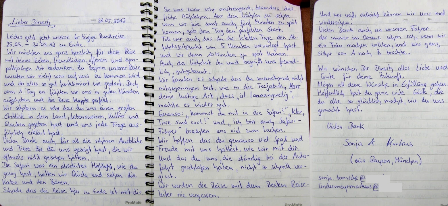 möchte Ihnen auf diesem Weg eine Bewertung unserer Reise zukommen