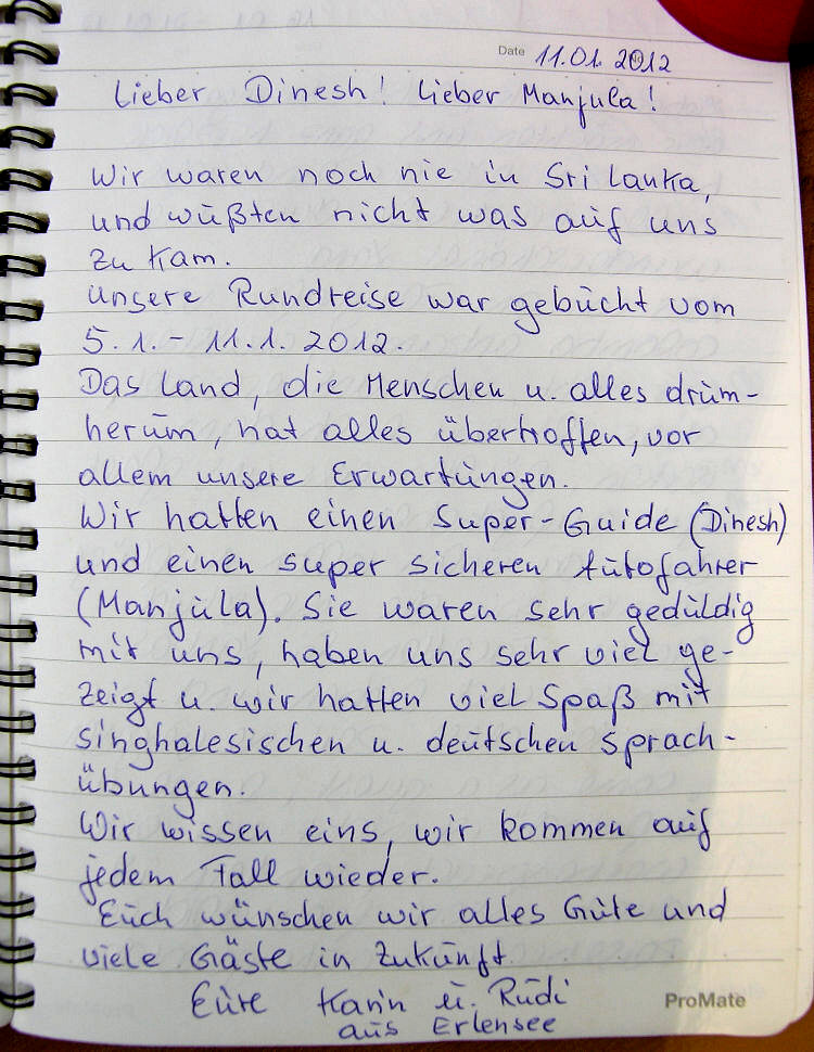 Wir haben dann die Fahrt von unserem Strandhotel an der Ostkueste zum Flughafen (mit Stopp in Polonaruva) auch über Sie gebucht (der selbe Fahrer).